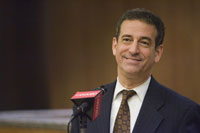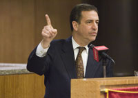 With a tip-off from the Progressive Patriots Fund, I had the opportunity yesterday to catch Sen. Russ Feingold speak on the Patriot Act and the NSA wiretapping scandal over at Cardozo Law School. (Their pics are a lot better than mine — I forgot to charge my batteries, and thus only got in 2 or 3 shots before my camera died on me.) And how was he? Well, all-in-all, he came off as a convincing candidate for the election ahead, as well as an impressive, informed, and personable fellow. To be honest, I found his remarks a bit lawyerly (then again, he’s a lawyer speaking before a law school, so that’s not really a fair criticism), but, taken in full, he seemed a committeed progressive and a refreshingly candid leader, the type of dynamic, independent thinker the Senate should be teeming with, if the system came anywhere close to working these days.